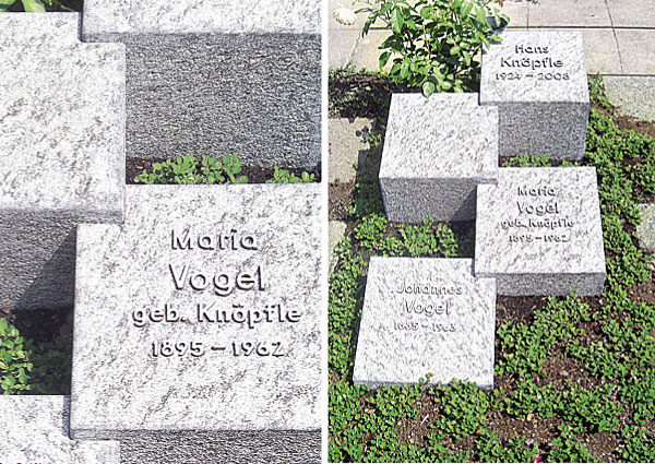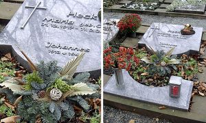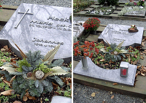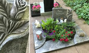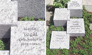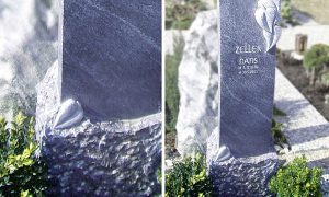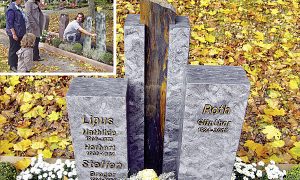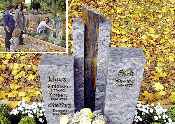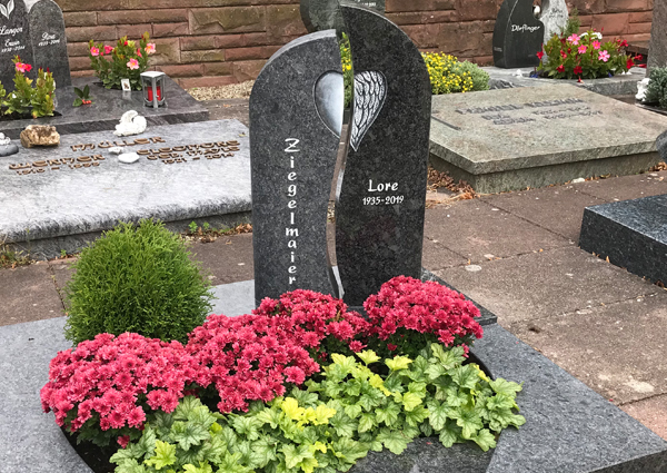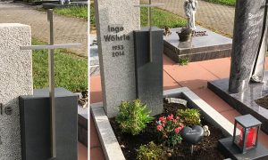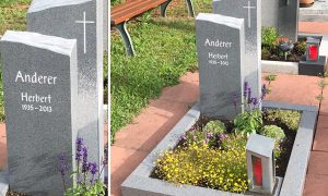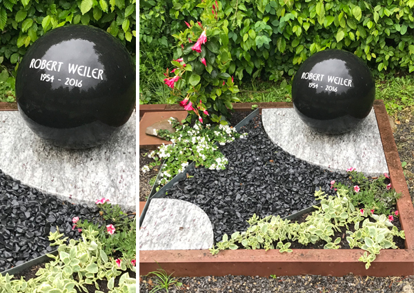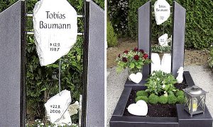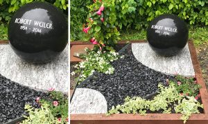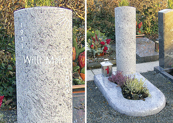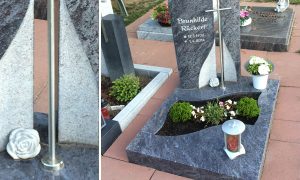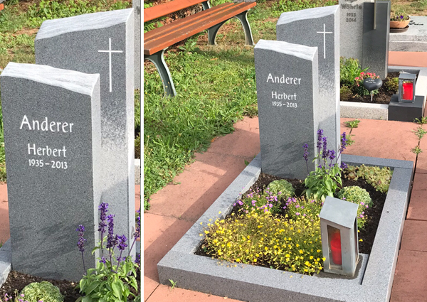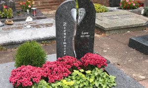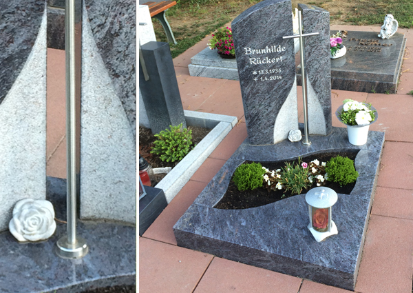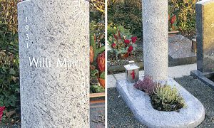 Urnengrab heller Granit gestockt + schwarzer Granit matt.