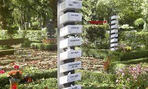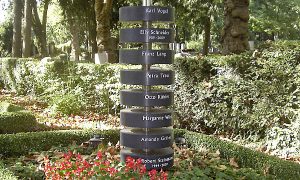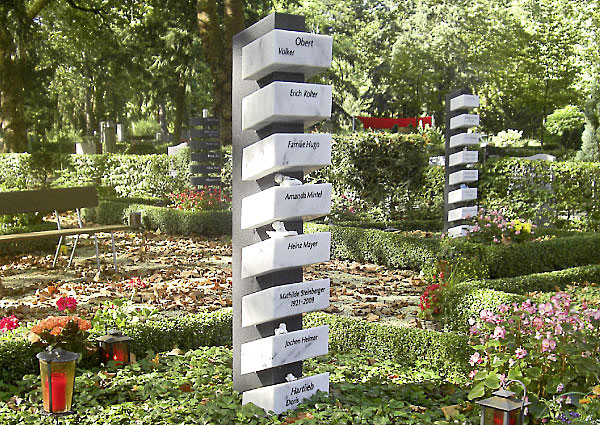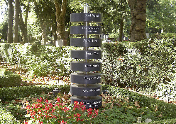Gemeinschafts-Urnengrabanlage von Karlsruher Steinmetzen und Gärtnern auf dem Feld 24 im Hauptfriedhof Karlsruhe.