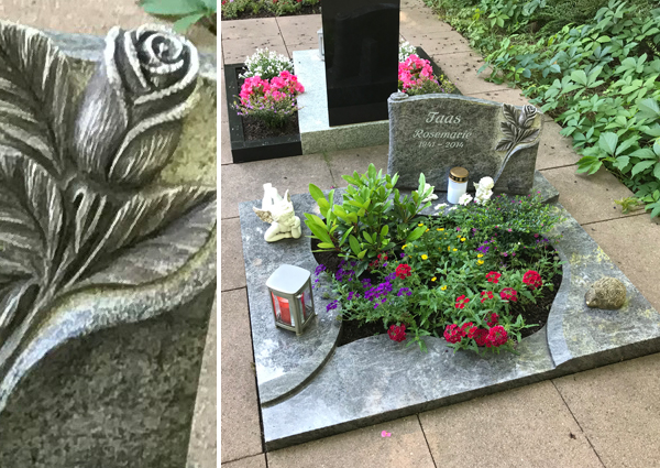 Urnengrab mit Rosenrelief aus Orion Granit.